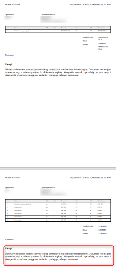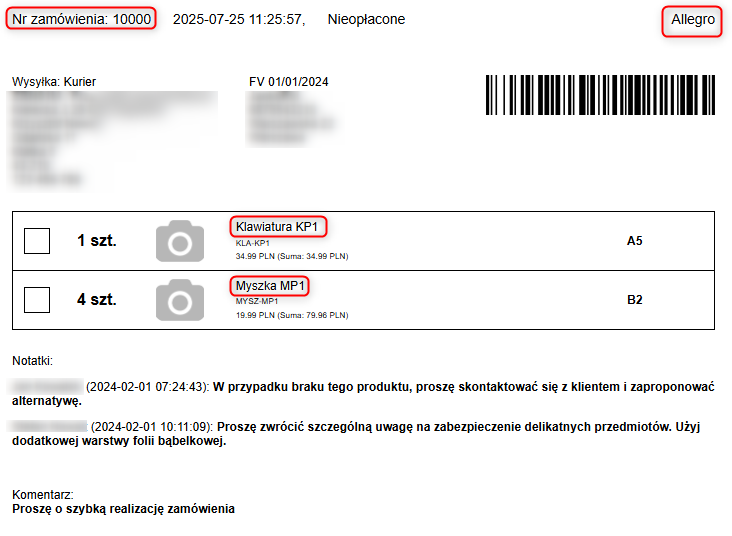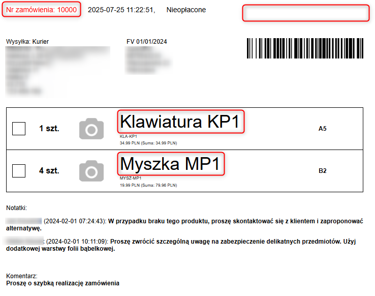 Nowy wydruk zamówienia ze zdjęciem produktu po modyfikacji: