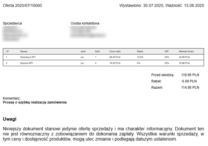 Wydrukuj dokument PDF z ofertą przygotowaną dla kupującego.