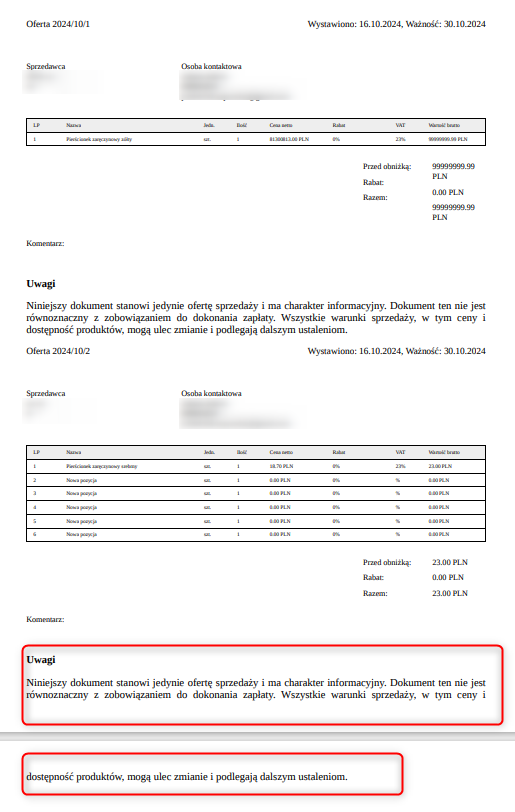 - notatkę kupującego.
