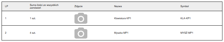 Zgrupuj i posortuj wszystkie produkty z wielu zamówień w jednej zbiorczej tabeli, znacznie skracając proces zbierania. Jeśli w kilku zamówieniach pojawi się produkt z tym samym symbolem, ich liczba zostanie zsumowana i umieszczona jako jedna pozycja w tabeli (w przypadku, gdy dany produkt nie posiada symbolu, jest on grupowany według nazwy produktu). Następnie wszystkie produkty zostaną posortowane według nazwy produktu (możesz dowolnie modyfikować klucz grupowania i sortowania — więcej o tym w sekcji "Edycja szablonów wydruków”).