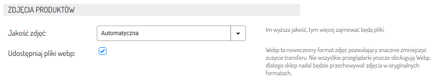 - Sekcja Zdjęcia produktów: Ustawienia zdjęć dla Twojego sklepu.