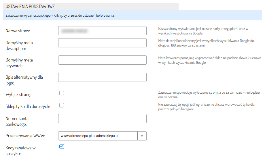 - Przekierowanie WWW: Adres, na jaki ma być przekierowany Twój sklep