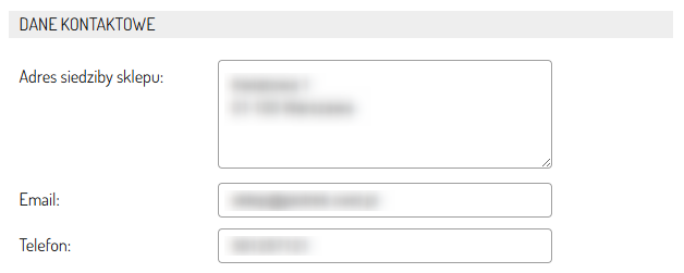 - Sekcja Dane kontaktowe: Podstawowe dane kontaktowe Twojego sklepu.