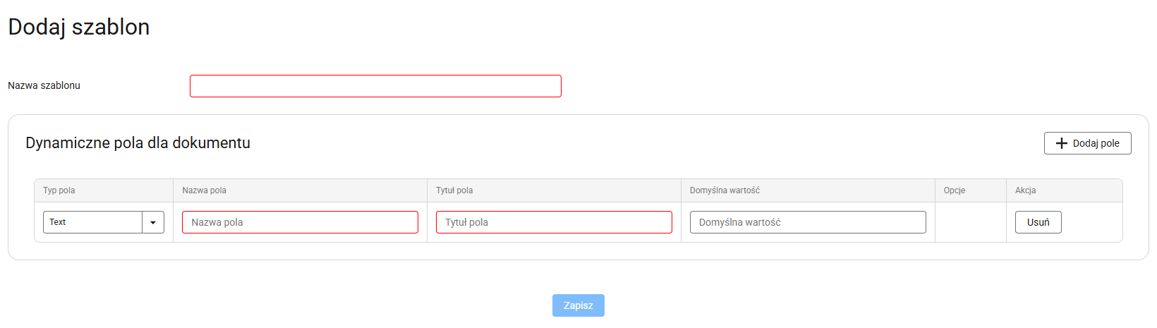 2. Na ekranie zobaczysz formularz nowego szablonu.