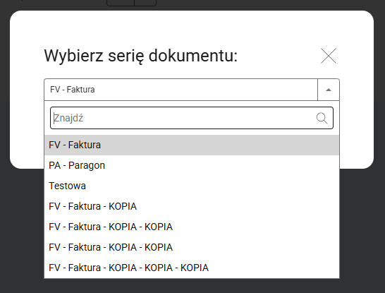 Seria korekty dokumentu: Wybierz serię, która ma być powiązana z korektami wystawianymi do bieżącej serii dokumentów