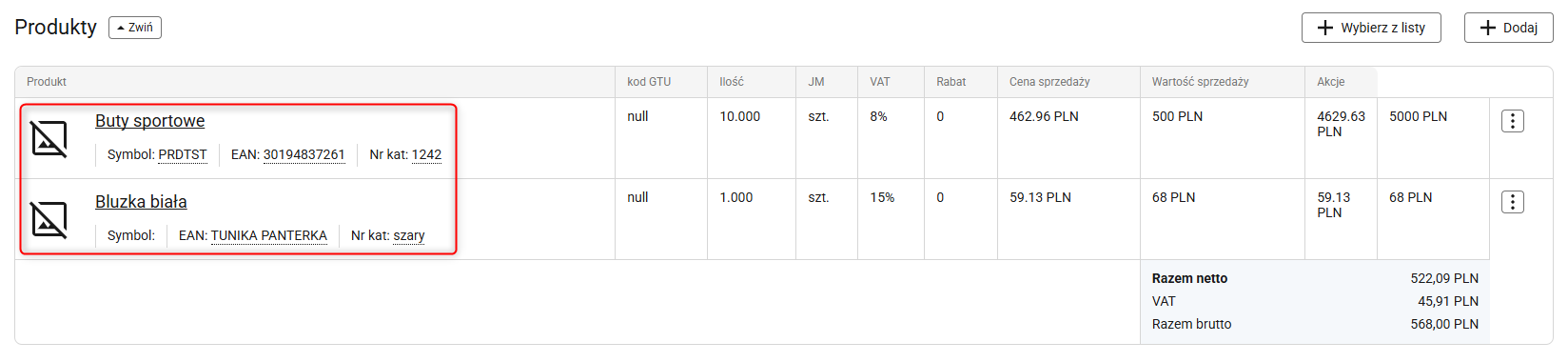 Po pobraniu danych z zamówienia, na dole strony, w sekcji Produkty, zobaczysz wszystkie produkty powiązane z danym zamówieniem.