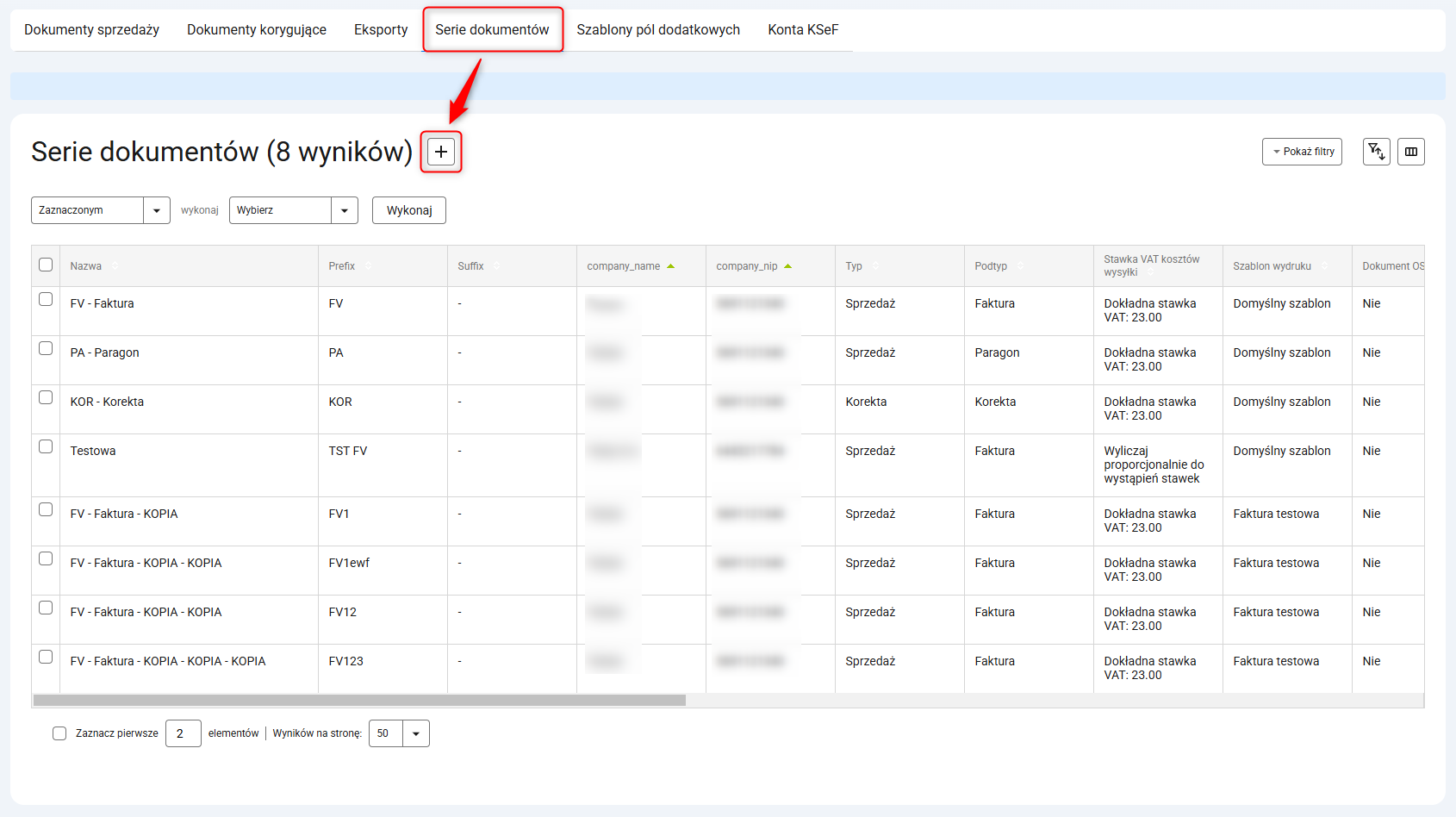 1. Aby utworzyć lub edytować serię dokumentów, przejdź do Dokumenty [Nowe] → Serie dokumentów.