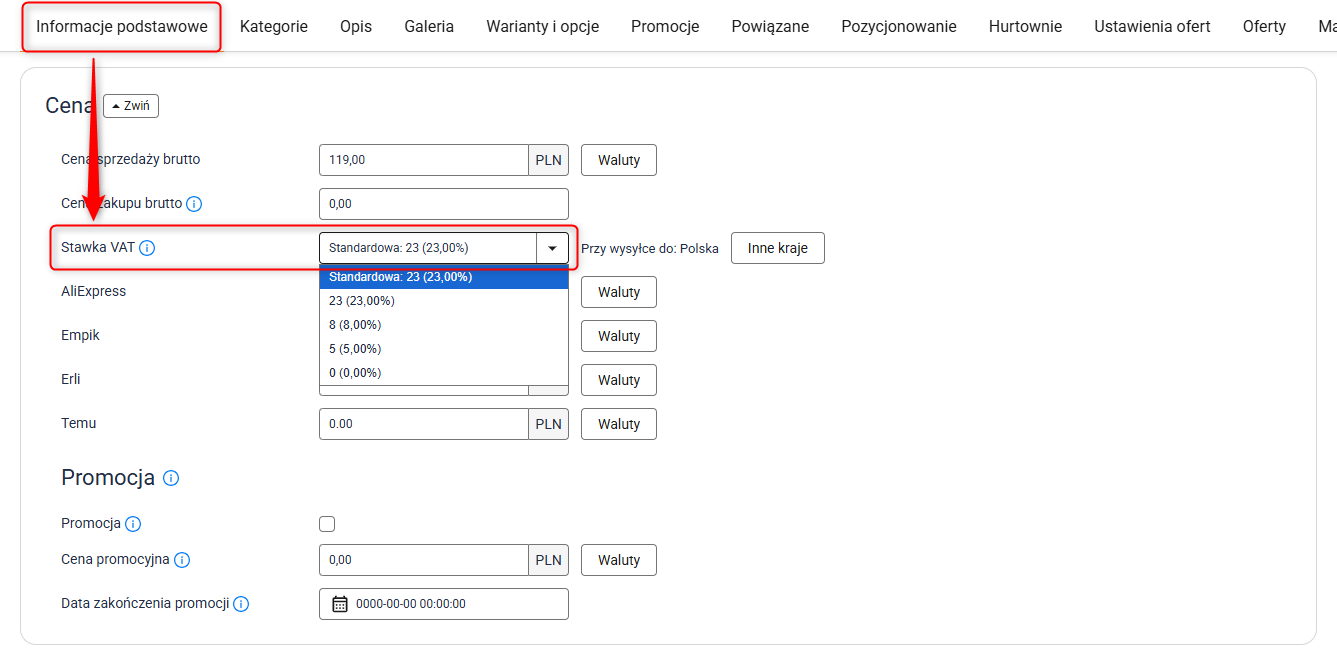 Jak ustawić stawkę VAT dla produktów Allegro?