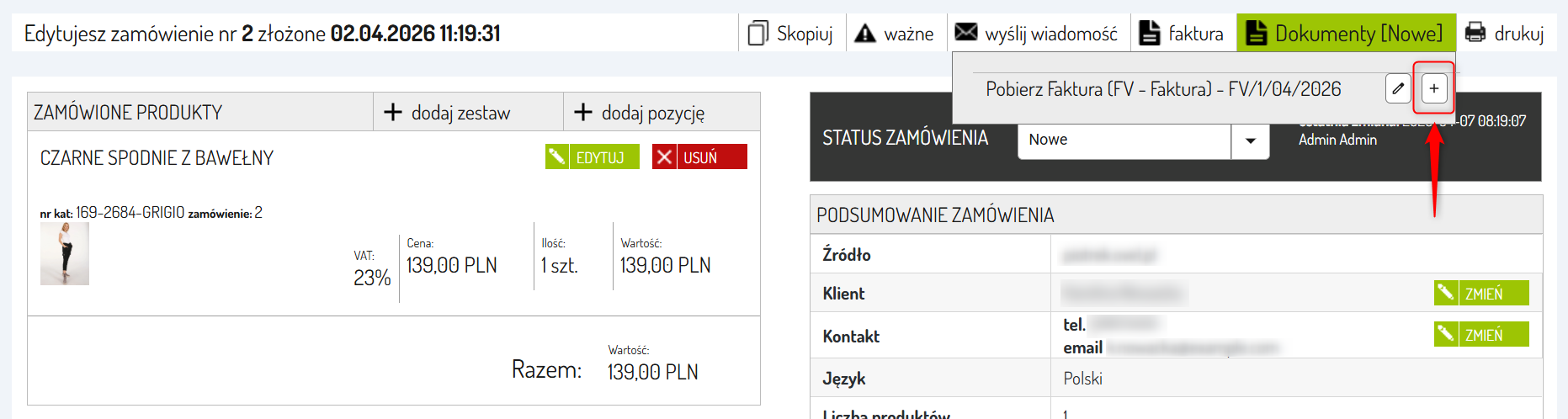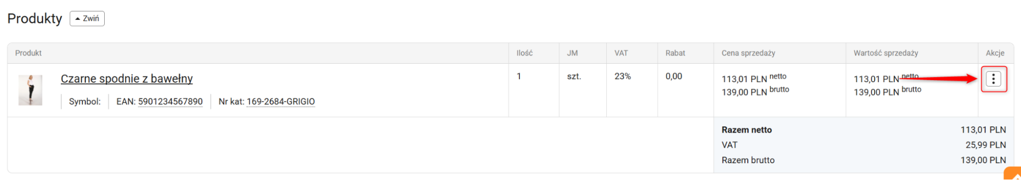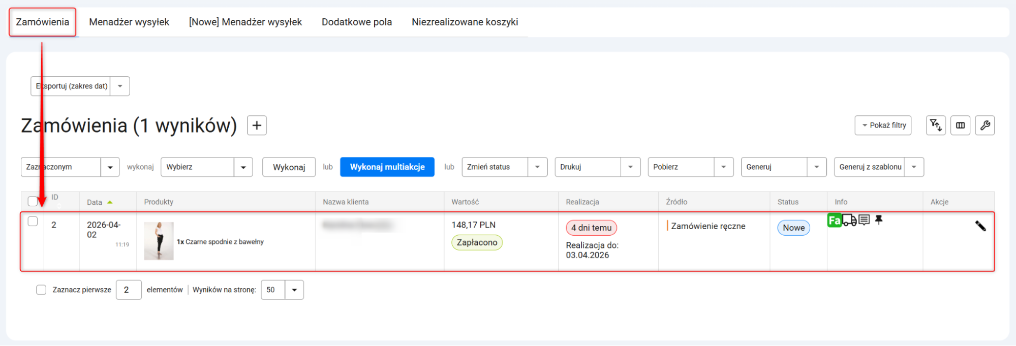 1. Przejdź do Zamówienia → Zamówienia → Wybrane zamówienie.