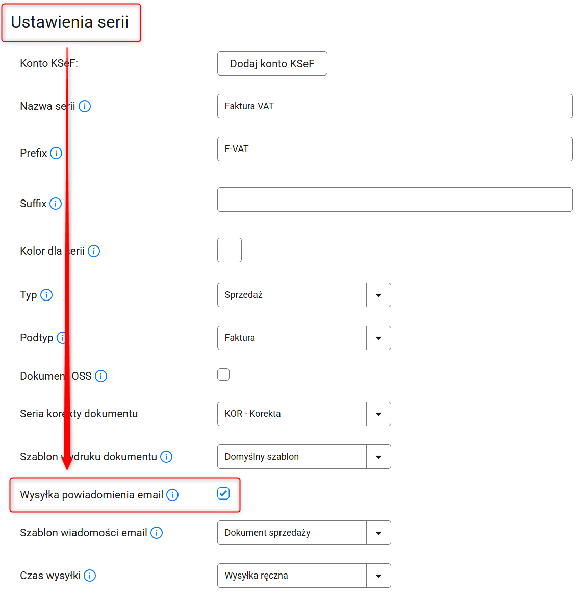 Od teraz każda faktura wystawiona w ramach tej serii będzie automatycznie wysyłana do kupującego zgodnie z wybranymi ustawieniami.