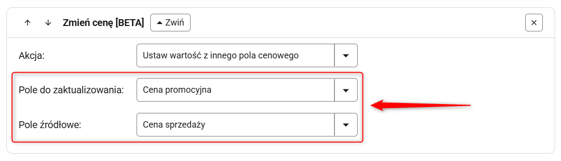 Ustawienie takich samych cen dla produktów jak w polu źródłowym.
