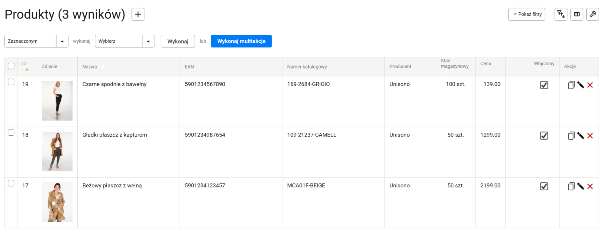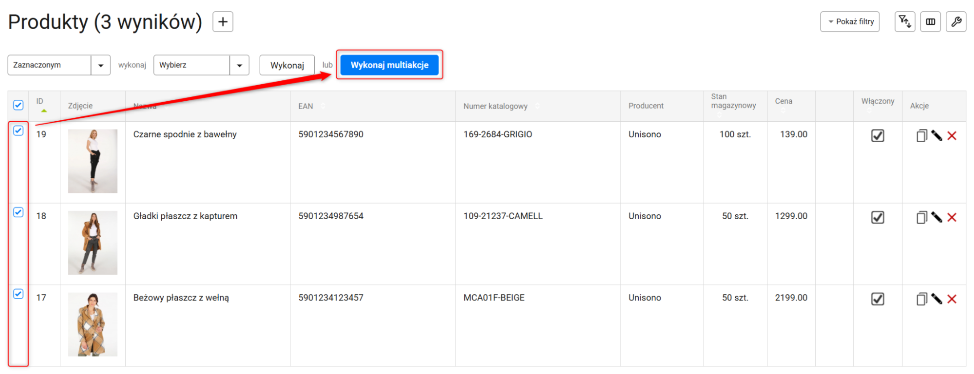 2. Zaznacz produkty, które chcesz zmodyfikować i kliknij przycisk Wykonaj multiakcje.