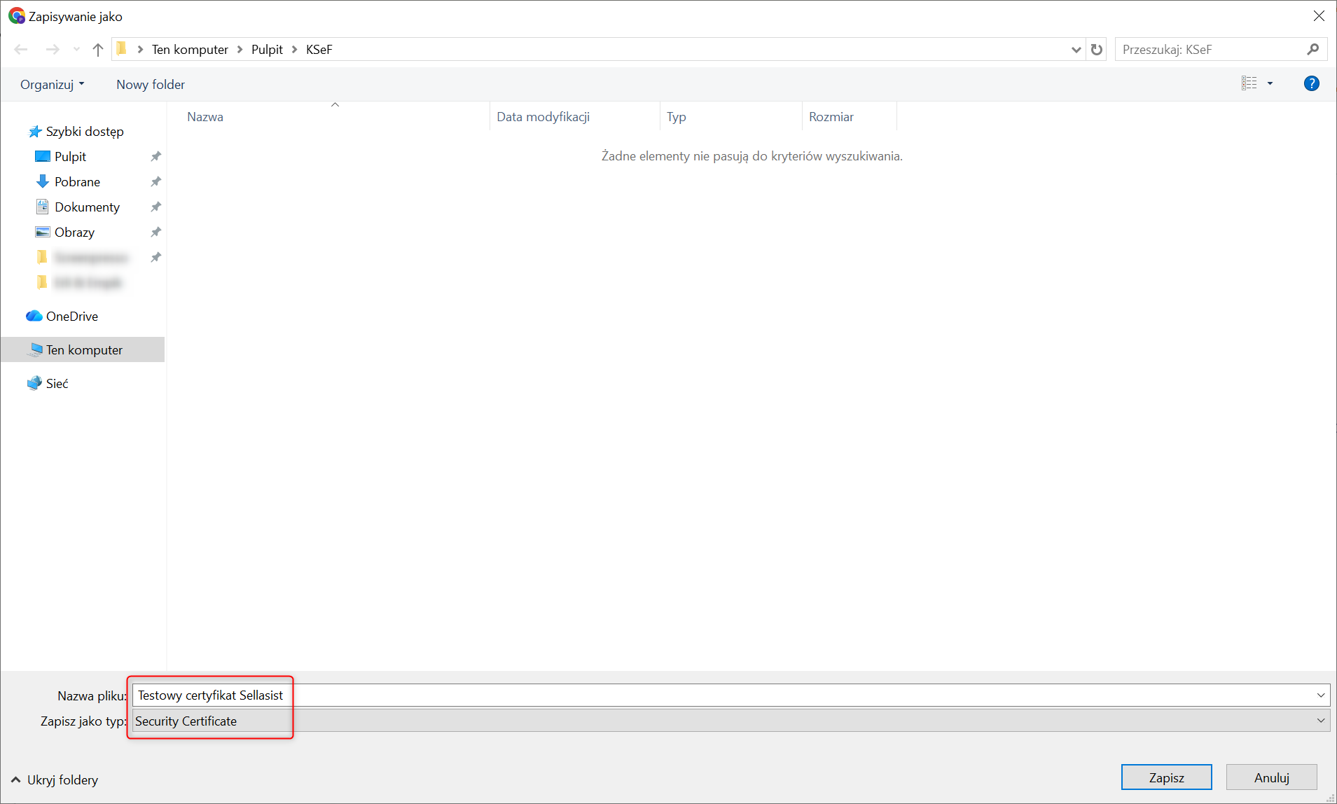 Pobierz i zapisz certyfikat.