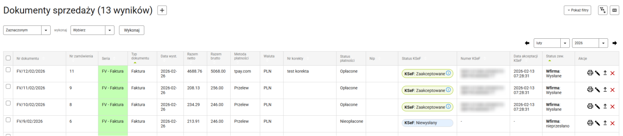 Każdy dokument sprzedaży wystawiany w Sellingo posiada 3 dodatkowe kolumny związane z KSeF: