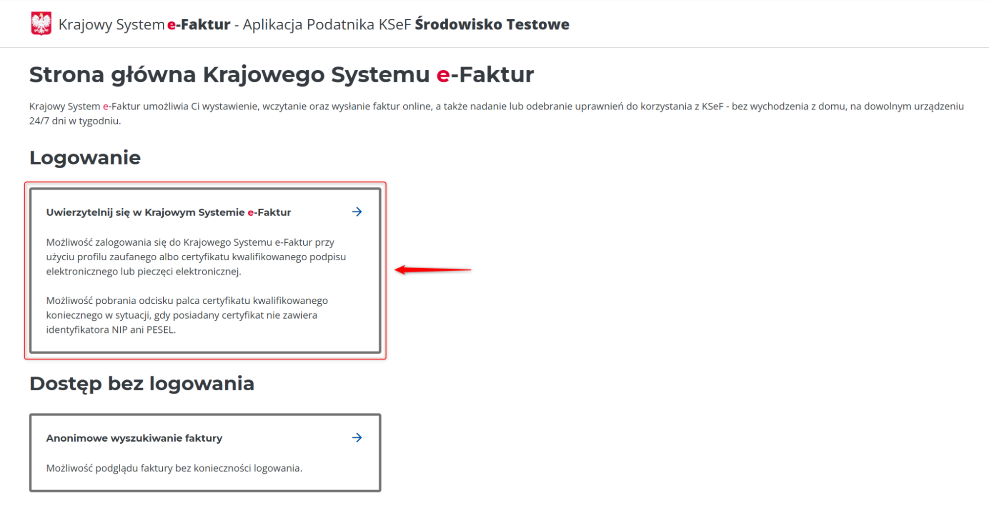 środowisku testowym KSeF.