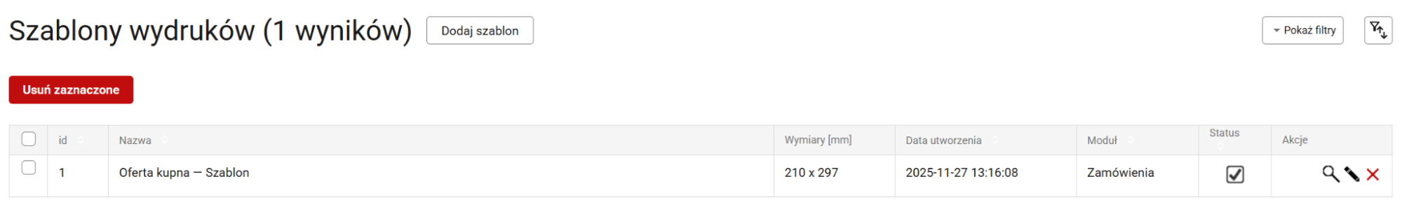 1. W menu głównym panelu przejdź do Administracja → Szablony wydruków i kliknij przycisk Dodaj szablon.