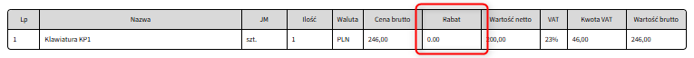 Usunięcie kolumny "Rabat"