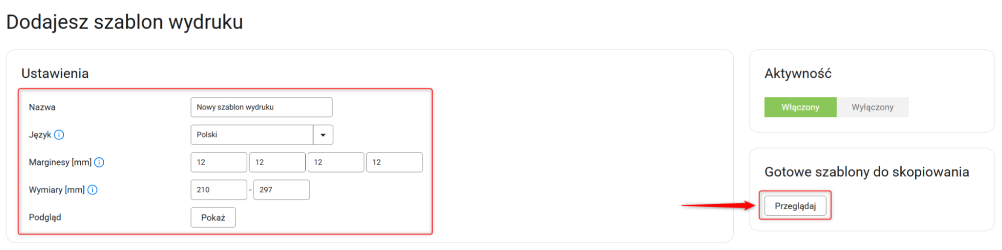 Dodawanie szablonu wydruku