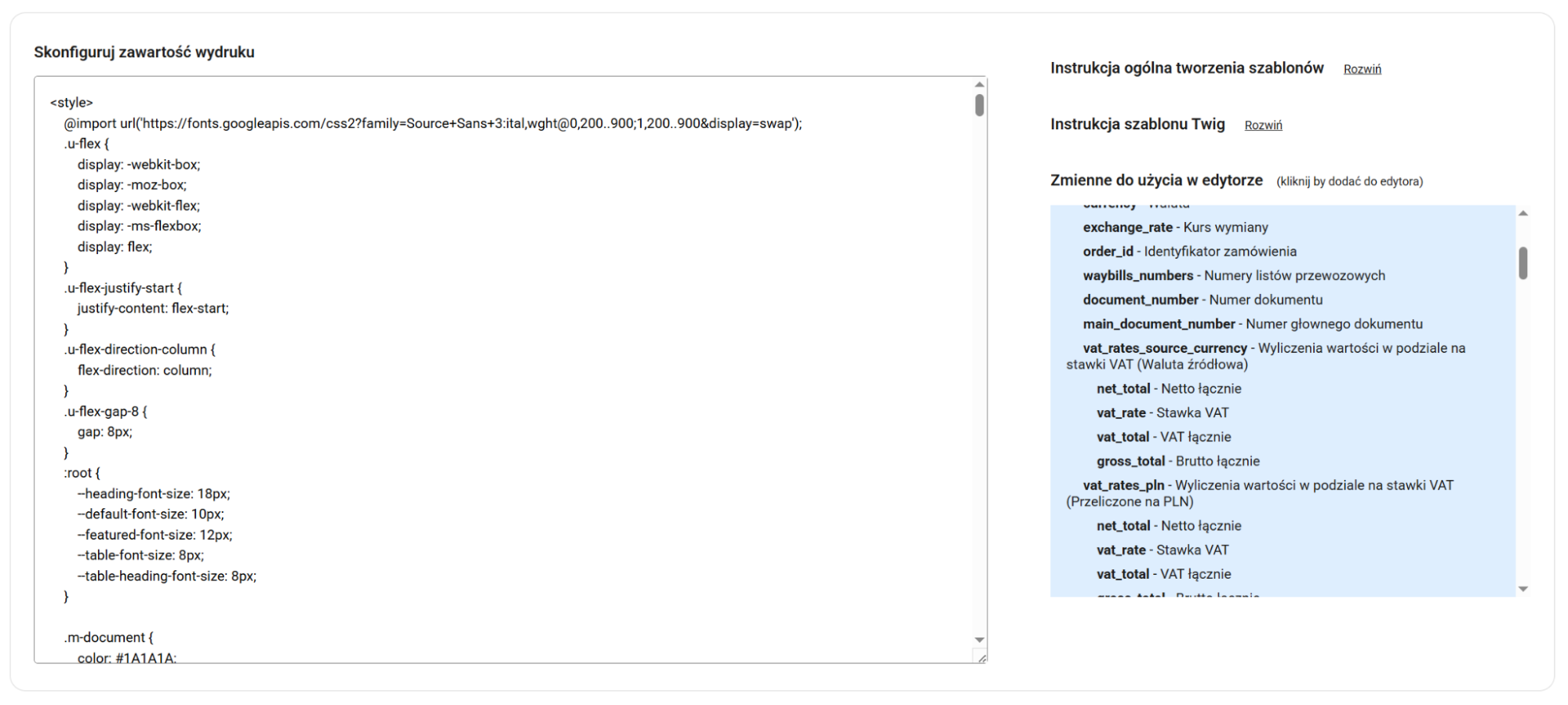 Edycja szablonów wydruków