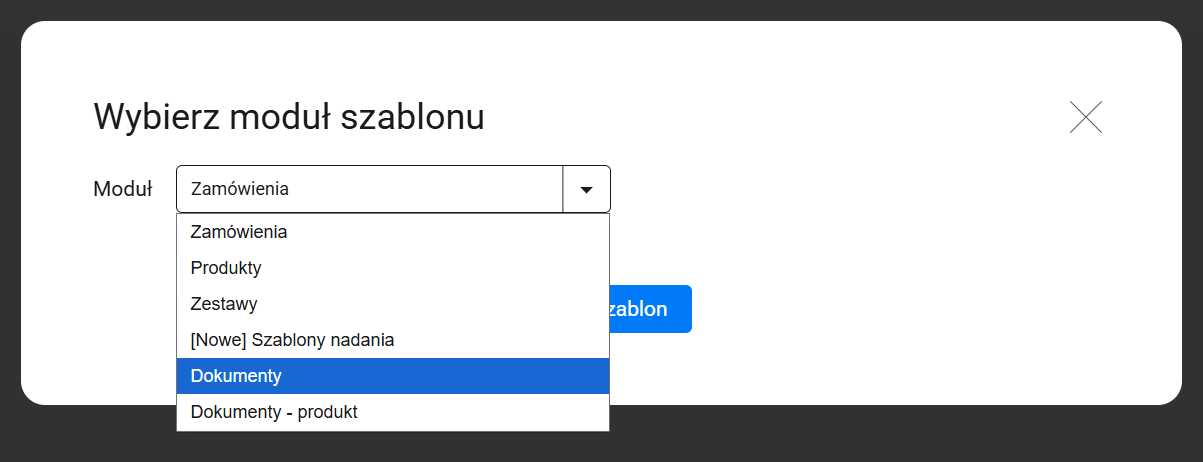 2. Wybierz z listy moduł szablonu Dokumenty i kliknij przycisk Dodaj szablon.